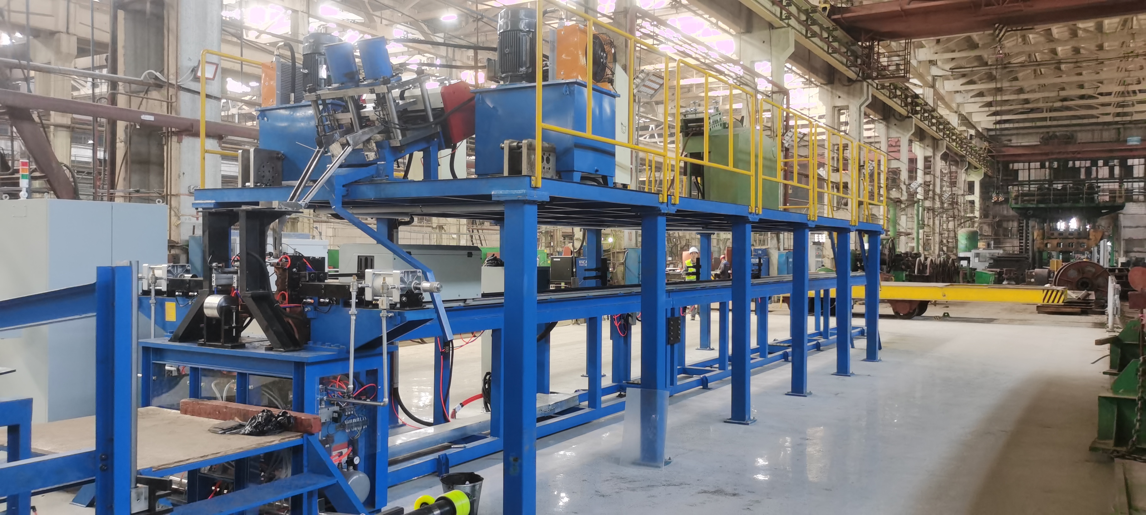 本生產(chǎn)線實現(xiàn)了鋼帶自動開卷、自動矯平、自動送帶、自動沖片、自動焊接整個全自動流程